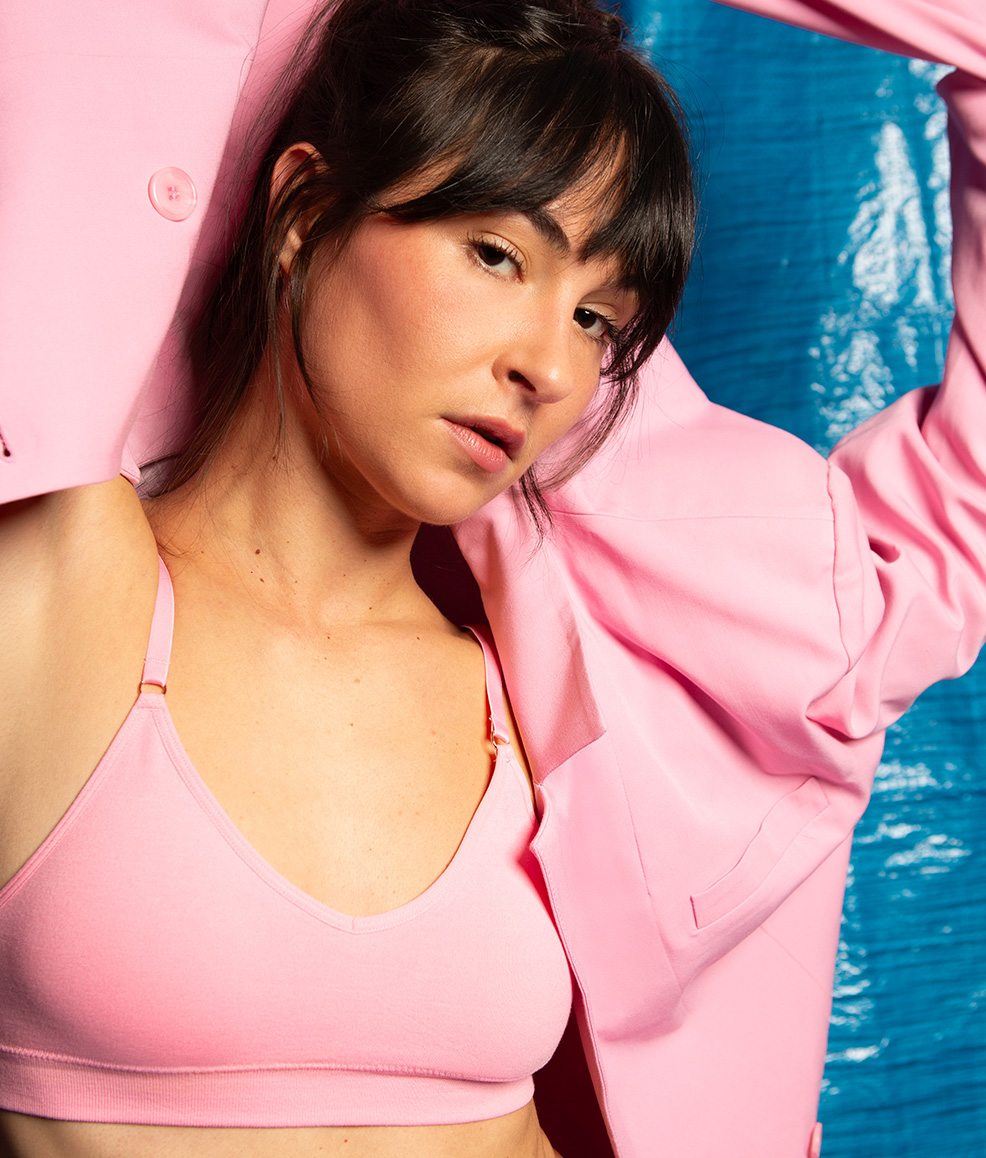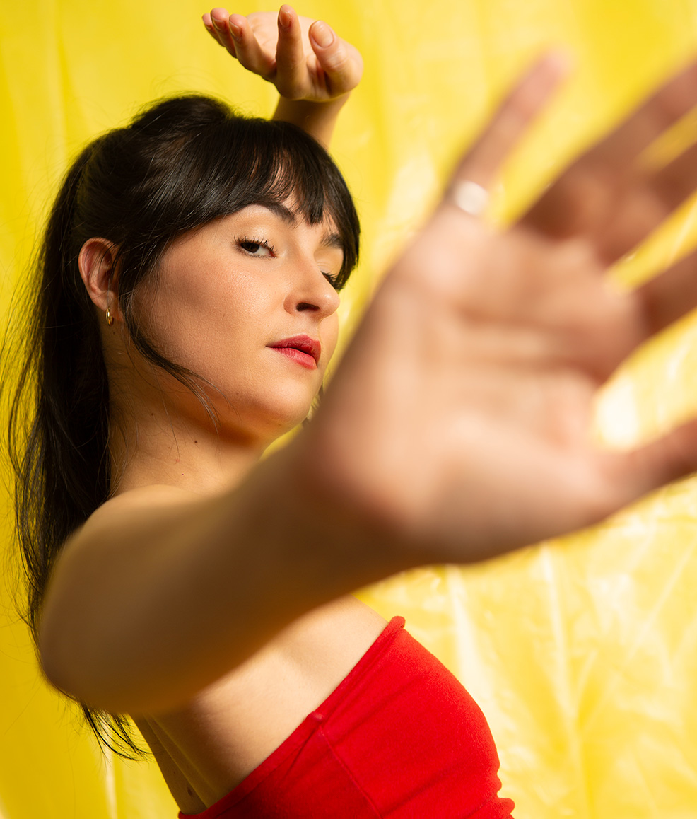 La série repose sur un jeu de contrastes. Un décor brut, presque urbain, vient dialoguer avec des couleurs affirmées, un stylisme plus classique et des poses inspirées de la danse. Ce mélange crée une univers entre discipline et lâcher-prise, traduisant la dualité du parcours d’Emma.