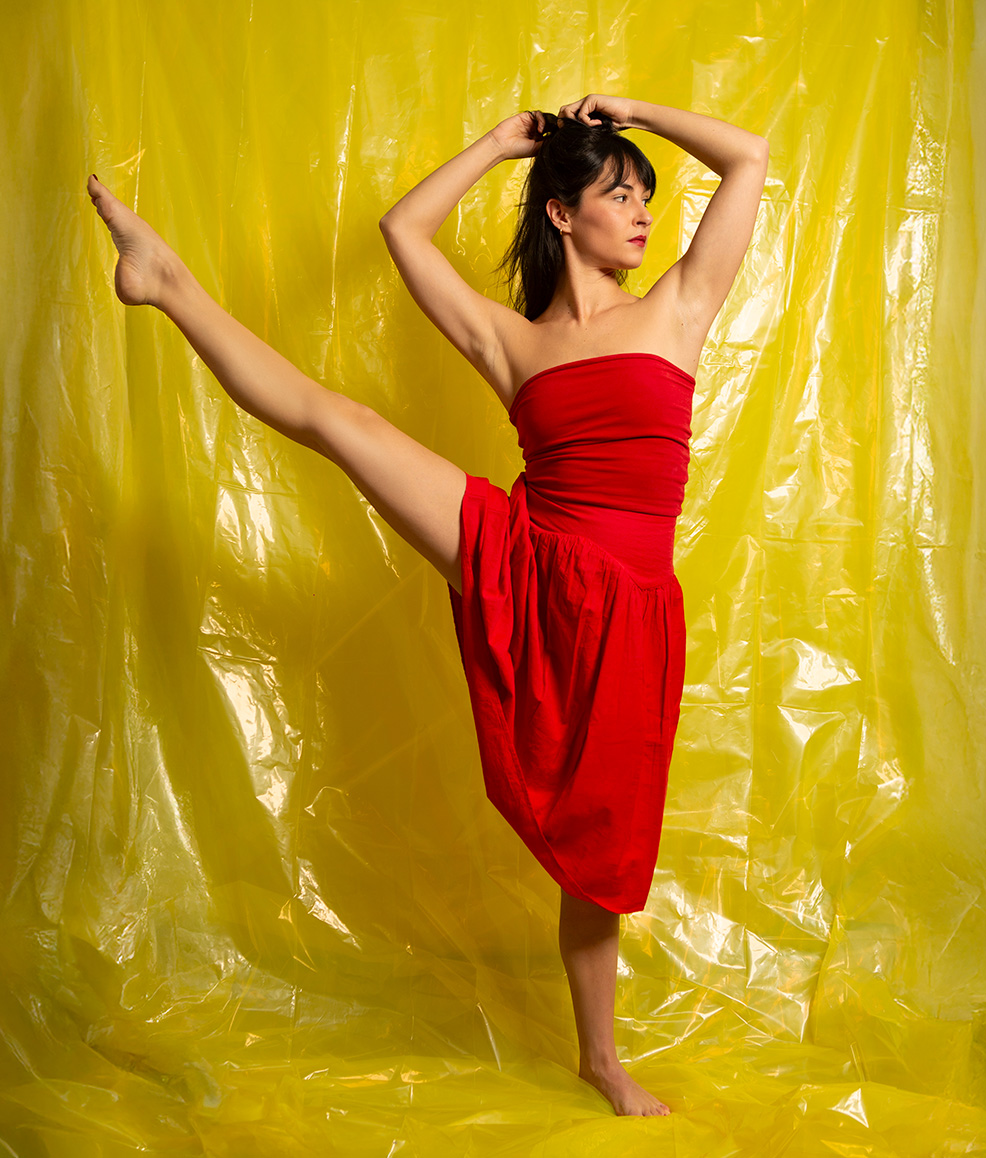 Emma est comédienne et a longtemps évolué dans un univers de danse très académique. Elle souhaitait une série de portraits capable de refléter à la fois cette rigueur chorégraphique et son identité de comédienne, plus libre et excentrique.